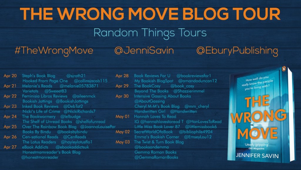 A big thank you to Random Things Tours for allowing me to be part of the #TheWrongMove blog tour by@JenniSavin and published by @EburyPublishing.