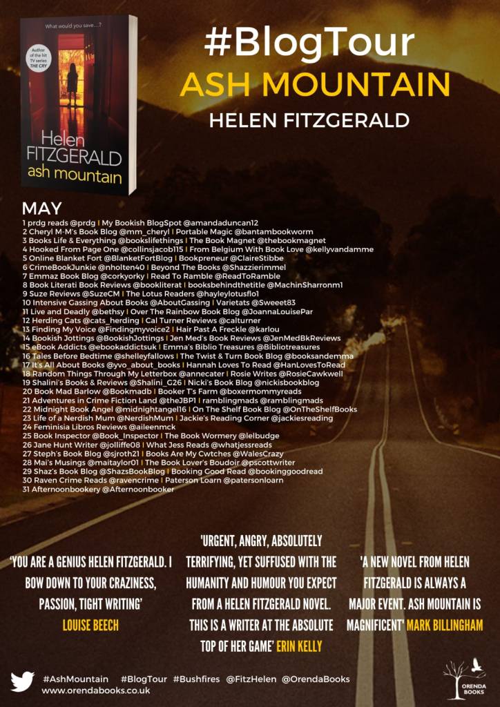 A fantastic thriller that takes you through every emotion while reading the book. Especially now with all the fires in Australia that have not long since happened, I really felt the horror of the fire growing closer and the fear that the townspeople had. The first book by Helen Fitzgerald for me and boy, I am glad I was invited by Orendo Books to take part in the blog tour., thank you!