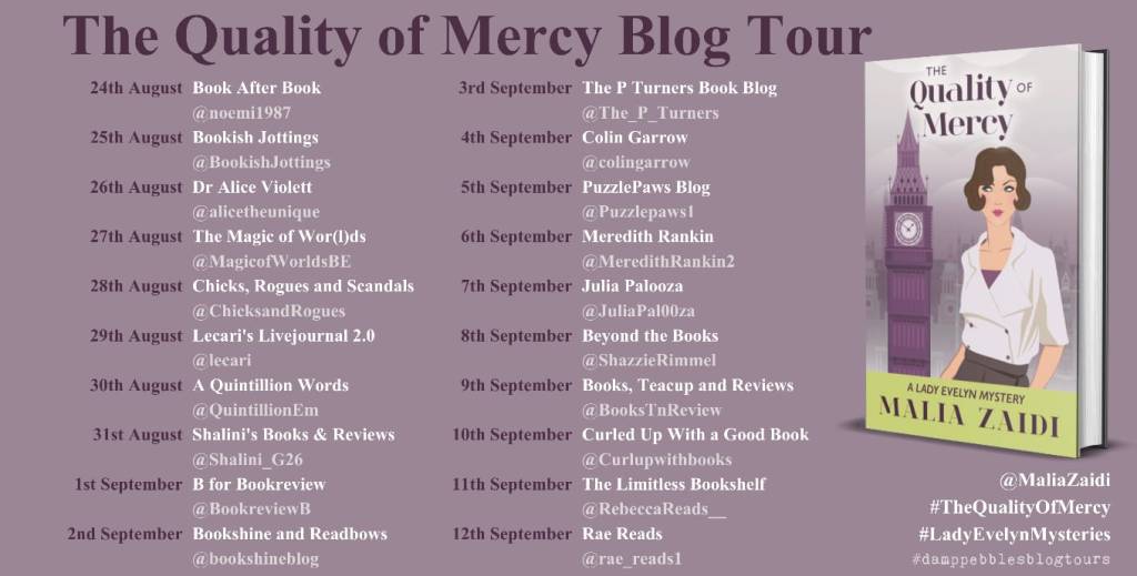 ‘The Quality Of Mercy’ by Malia Zaidi is the fifth book in the Lady Evelyn Carlisle Mystery series.