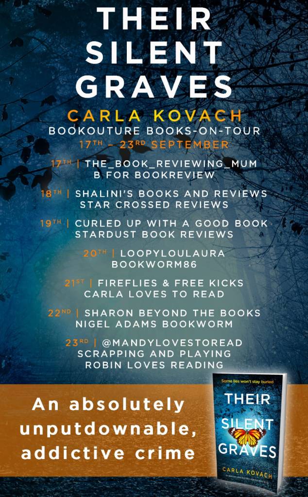‘Their Silent Graves’ by Carla Kovach is the latest story in the DI Gina Harte series. I have been a Carla Kovach fan since I won a copy of ‘Whispers Beneath The Pines’ a number of years ago. The Gina Harte series, I have been an avid follower of. I was extremely lucky I was offered a place on this tour.