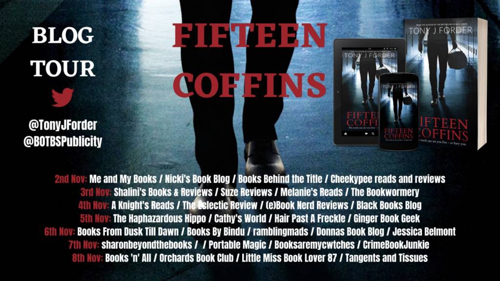 ‘Fifteen Coffins’ by Tony J. Forder is a standalone mystery thriller that is a break away from his wildly popular Bliss series. I did not doubt in my mind that this would blow me away anyway, but as soon as I opened the first page and began to read I had the concrete proof that Tony is a mastermind at his craft.
