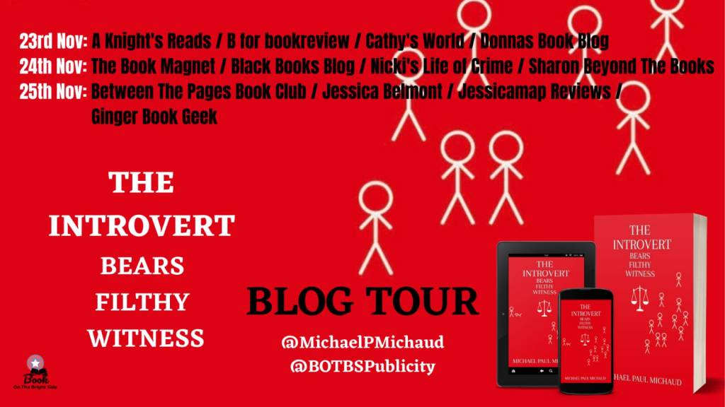 ‘The Introvert Bears Filthy Witness’ by Michael Paul Michaud is the third instalment of the Introvert series. The book is out on the 9th January and I am a part of the blog tour released to crank up the excitement for this next chapter. I now need to stop and admit, this is my first foray into The Introvert and his life. I do have to say I enjoyed the book and it is fine to be read as a standalone…BUT, I now really need to dip back into the previous books as this one has piqued my interest to the max!