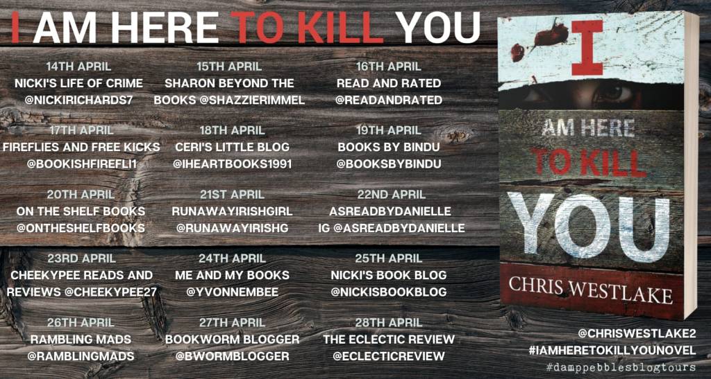 ‘I am Here To Kill You’ by Chris Westlake, he is another new author for me, lately I have been introduced to quite a few new authors and I love this hobby I have, finding new authors who write fabulous books and this one is another one of those books.