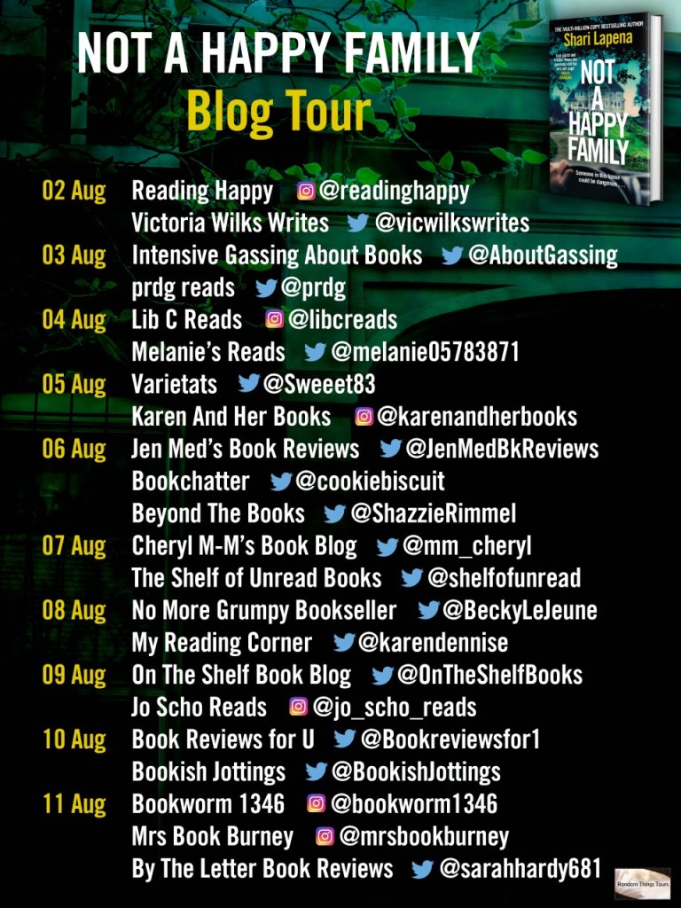 ‘Not A Happy Family’ is the latest offering by the marvel that is Shari Lapena! A fast-paced and twisted family drama that just stops short at grabbing you by the throat and whisking you into the story with no time for a breath!