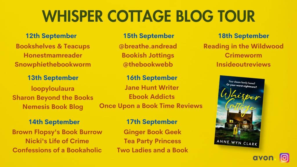 Whisper Cottage by Anne Wyn Clarke is a psychological thriller that is a debut novel. I loved the cover and synopsis and hoped the book kept the promise it seemed to hold.