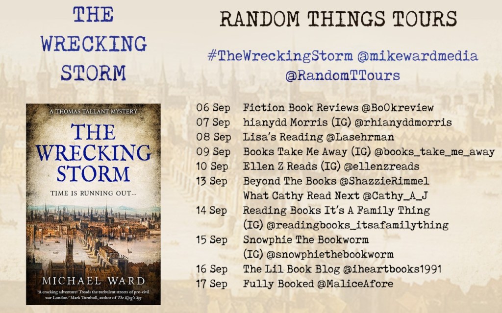 ‘The Wrecking Storm’ by Michael Ward is the second book in the Thomas Tallant series which follows the adventures of a London spice merchant’s son in Pre-Civil war England. The first book is ‘Rags of Time’. It is possible to read this book as a standalone although if you read the first you get the back story and everything that goes on politically and personally for the characters.