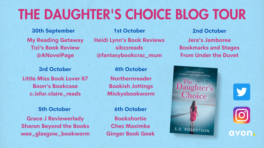 ‘The Daughter’s Choice’ by S.D. Robertson is an emotional family drama that shows us how far parents will go to protect their child or children. I was curious after reading the synopsis so I accepted my invitation to this books blog tour and settled down to read ‘The Daughter’s Choice’.