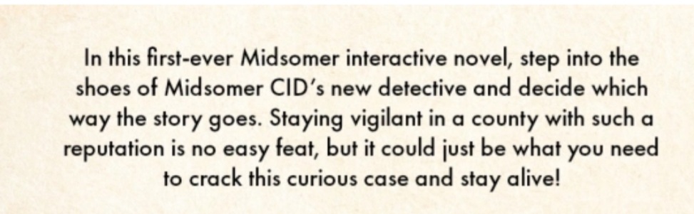 Well, that’s where you come in. Step into the shoes of Midsomer CID’s newest recruit, choose your path and decide which way the story goes.