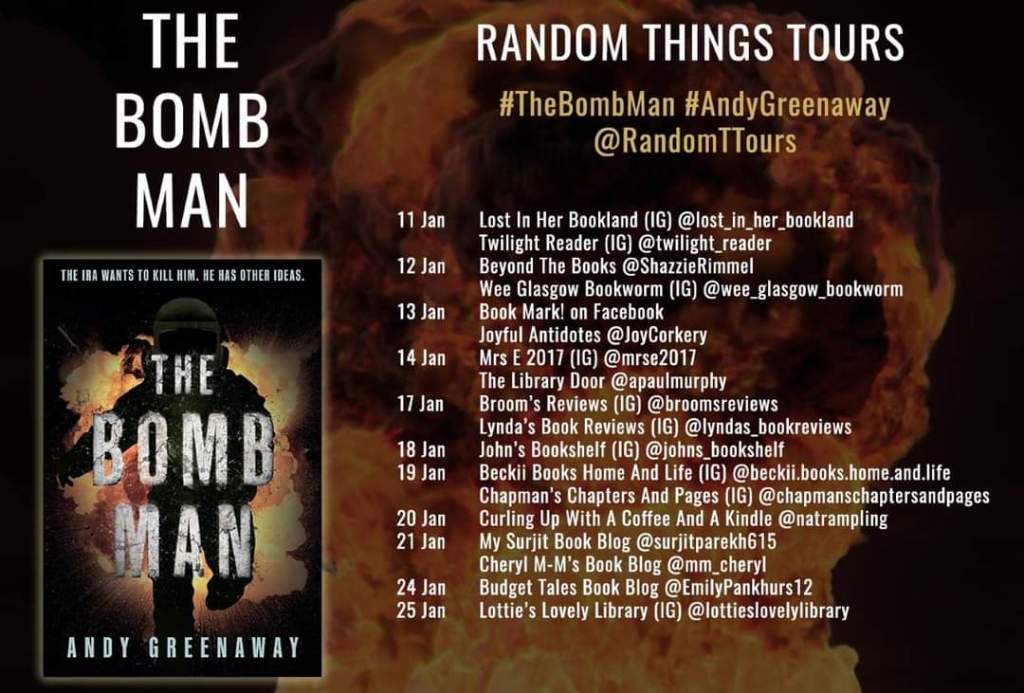 Today I am on the blog tour for Andy Greenaway and The Bomb Man. I saw my invitation to this tour and needed no persuasion to accept. As someone whose family were very lucky to miss being in the Manchester IRA bombing, (they walked through the road where the bomb was planted a mere 15 minutes before it exploded), I have almost a macabre interest in The Irish Troubles. First the synopsis before I give you my thoughts.