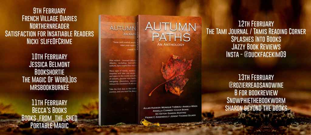 I am not usually an anthology reader, but I have read a few anthologies over the last six months. I have surprised myself by actually enjoying each and everyone. This particular anthology is titled Autumn Paths: An Anthology. There are altogether nine authors who have contributed to this collection. The authors are from both the UK and America and have written stories from multiple genres.
