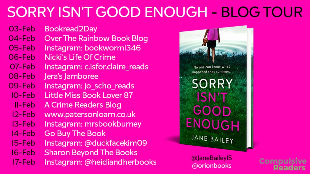 I’m really excited to say I am part of the Compulsive Readers blog tour for Sorry Isn’t Good Enough by Jane Bailey. Published in hardback by Orion Books on the 3rd of February. Thanks to both Tracy Fenton and Orion Books for both the invitation and the copy of this book to take part.