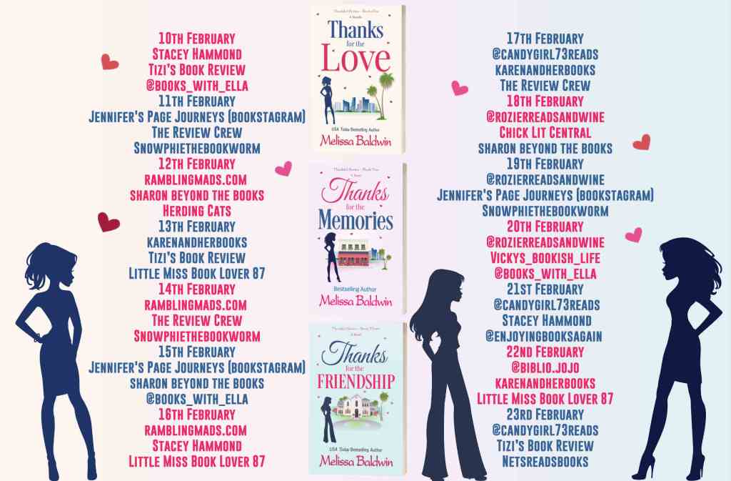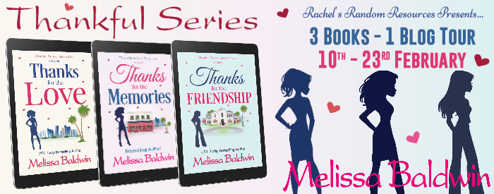 My second post for the Thankful Series today. The second book, Thanks For The Memories is up today. Thanks to Rachel’s Random Resources and Melissa Baldwin for my place on the tour and my copies of all three books.