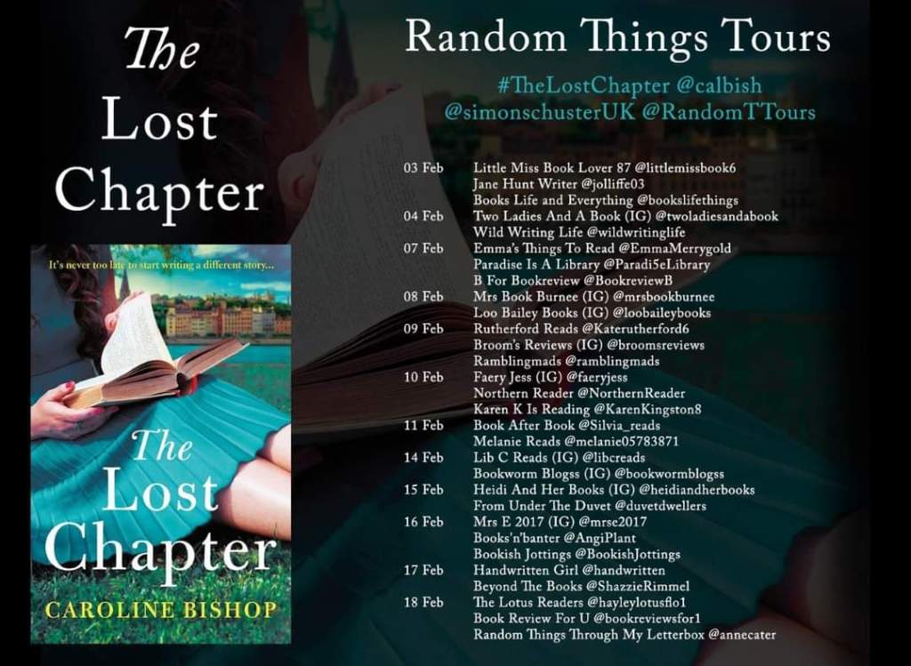 Today I am proud to be part of the blog tour for The Lost Chapter by Caroline Bishop on behalf of Random Things Tours. Thanks to Anne Cater and Simon & Schuster UK for my copy of the book to bring you my honest review.