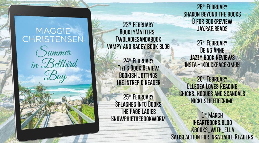 I am on the blog tour for Summer In Bellbird Bay by Maggie Christensen for Rachel’s Random Resources. Thanks to both Rachel and Maggie Christensen for my place on the tour and the copy of the book.