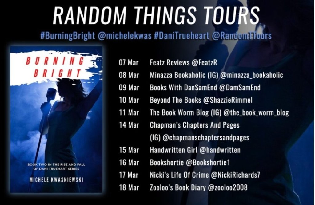 Burning Bright has a cliffhanger conclusion that left me desperate for the next book already! Michele Kwasniewski has brought a warts and all story of a teenager who grows up in the harsh light of stardom. I do hope we get more books from Michele after Dani’s story is told.