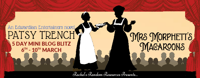 Patsy Trench has spent her life working in the theatre. She was an actress for twenty years in theatre and television in the UK and Australia. She has written scripts for stage and (TV) screen and co-founded The Children’s Musical Theatre of London, creating original musicals with primary school children. She is the author of three non fiction books about colonial Australia based on her own family history and four novels about women breaking the mould in times past. Mrs Morphett’s Macaroons is book four in her ‘Modern Women: Entertaining Edwardians’ series and is set in the world she knows and loves best. When she is not writing books she teaches theatre part-time and organises theatre trips for overseas students.