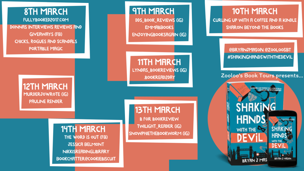 Today, it’s my turn to host the blog tour of Shaking Hands With The Devil by Bryan.J.Mason for ZooLoo’s Book Tours. Thank you to both Zoe and the author for my gifted copy of the book to take part today. All views are my own.
