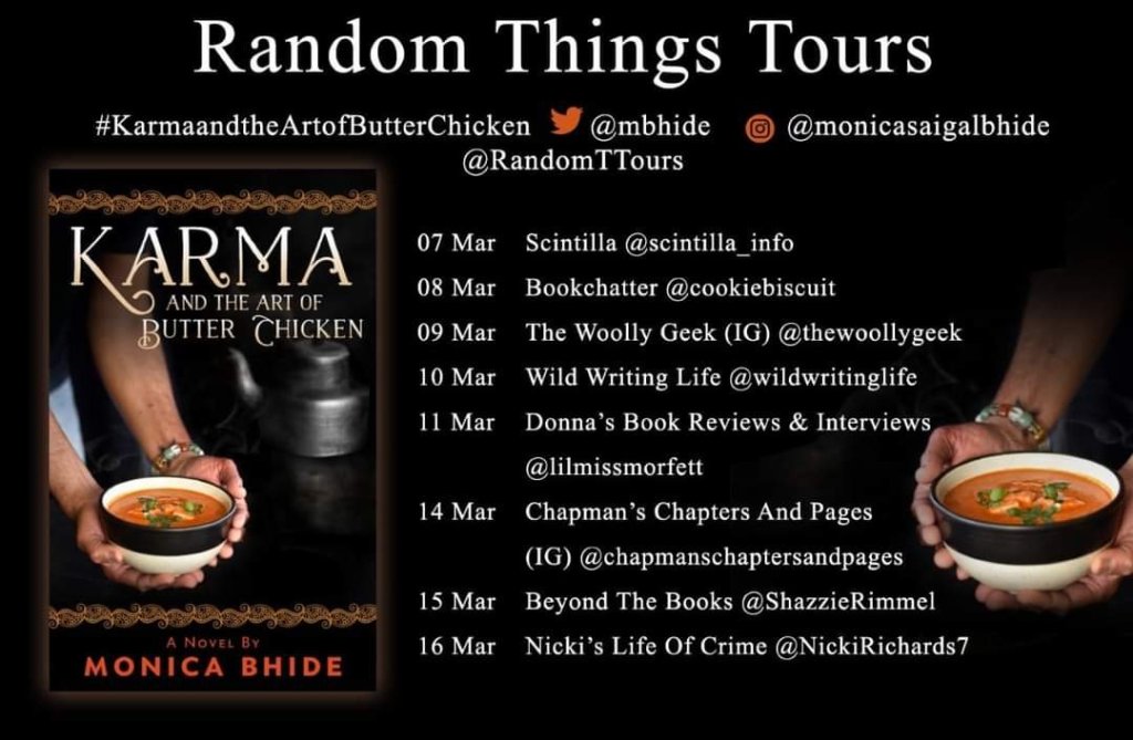 I am hosting the blog tour for Karma and the Art of Butter Chicken by Monica Bhide on behalf of Random Things Tours. Thanks to both Anne Cater of Random Things Tours and Monica Bhide for my copy of the book.