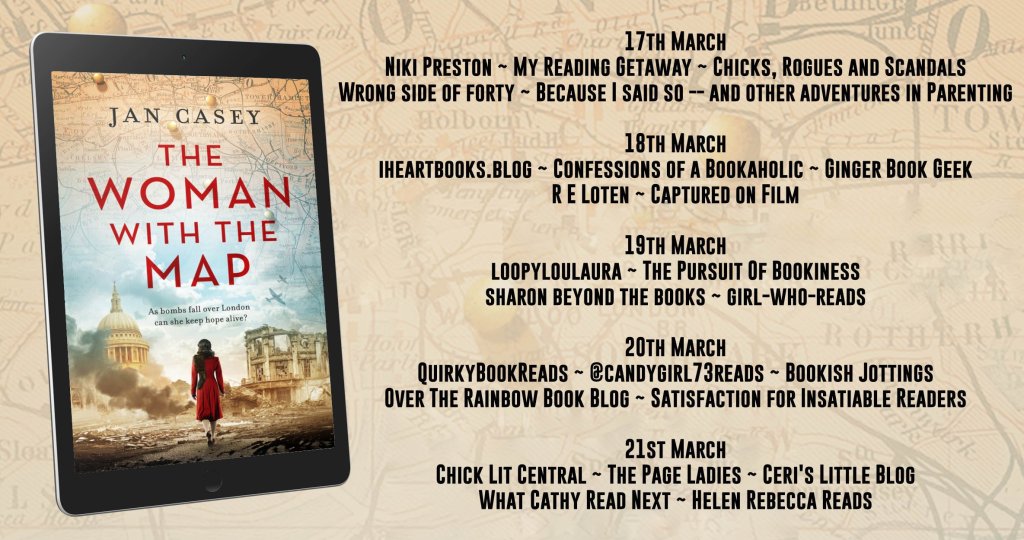 I am so pleased to say that today I am part of the book tour for The Woman With The Map by Jan Casey. A big thank you to Rachel of Rachel’s Random Resources and Aria Books for my gifted copy of the book to take part.