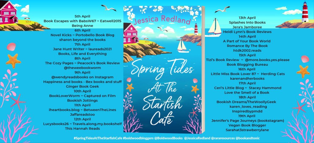 Today I’m happy to say I am part of the Rachel random resources book tour spring tides at starfish cafe. Thanks to Rachel and Boldwood Books for the copy of the book to take part today.