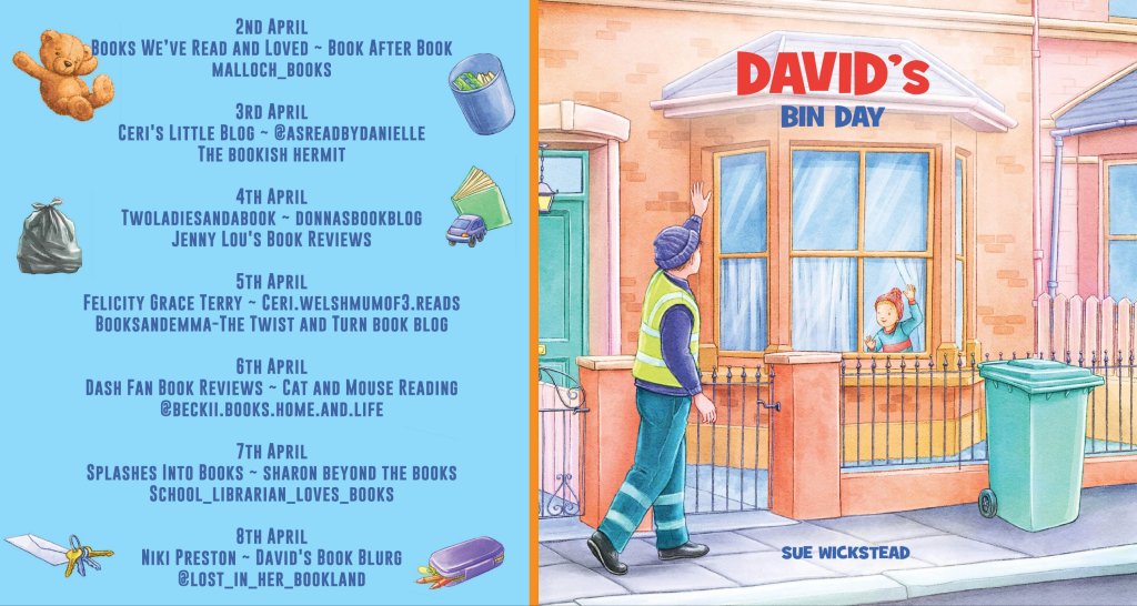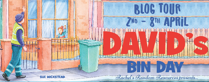I’m so happy to be hosting a stop today for David’s Bin Day by Sue Wickstead on behalf of Rachel’s Random Resources. Thanks to both Rachel and Sur for the beautiful book to take part today.
