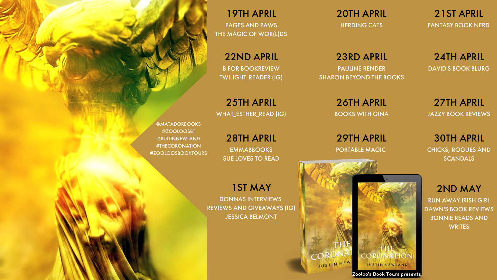 I’m pleased to say I am part of the book tour for The Coronation by Justin Newland on behalf of ZooLoo’s Book Tours. Thanks to Zoe and Matador Books for the copy of the book to take part.