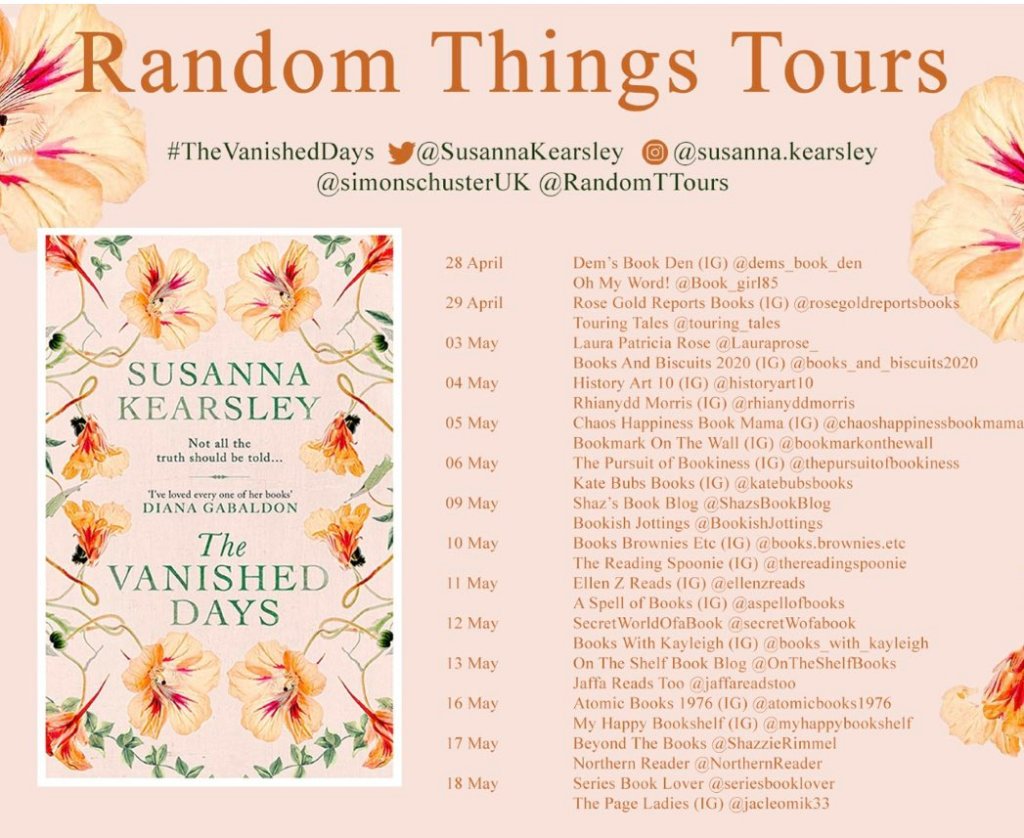 Today I am happy to say I have The Vanished Days by Suzanna Kearsley on the blog. Massive thanks to Anne Cater of Random Things Tours and Simon & Schuster UK for my copy of this novel to take part with my honest thoughts.