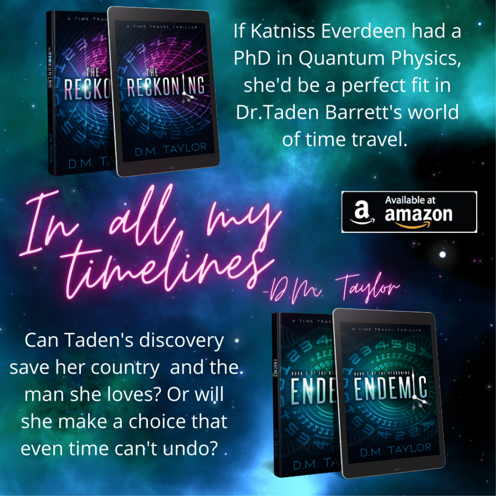 One thing about book blogging, I love discovering new authors! D.M Taylor is a new author for me. The Reckoning is the first book on a series, a time travel, sci-fi thriller with a slow burn romance running through it. I wasn’t really certain this would be a book for me, so I began to read with an open mind.