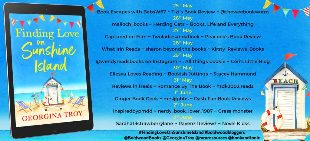 Today, I again start with an apology. I am late for my review on the tour for Finding Love on Sunshine Island by Georgina Troy. Thanks to Rachel’s Random Resources and Boldwood Books for my copy of the book to take part.
