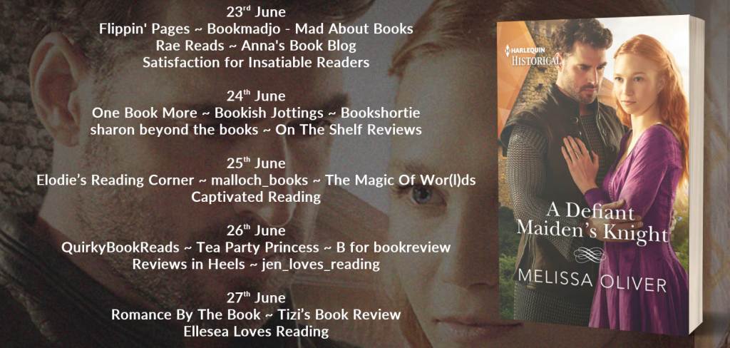 Today I am part of the blog tour for A Defiant Maiden’s Knight on behalf of Rachel’s Random Resources. Thanks to Rachel Gilbey and Mills & Boon Historical for the copy of the book to take part today.