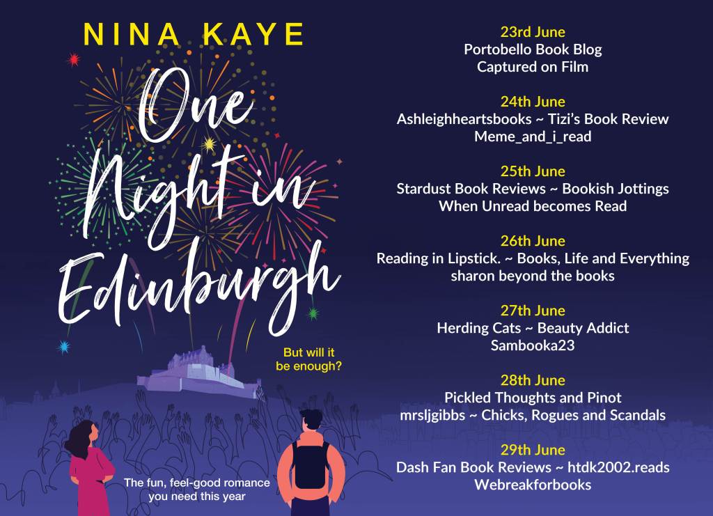 I’m thrilled to be on the blog tour for One Night in Edinburgh by Nina Kaye on behalf of Rachel’s Random Resources. Thanks to Rachel Gilbey and Canelo Books for my copy of the book.