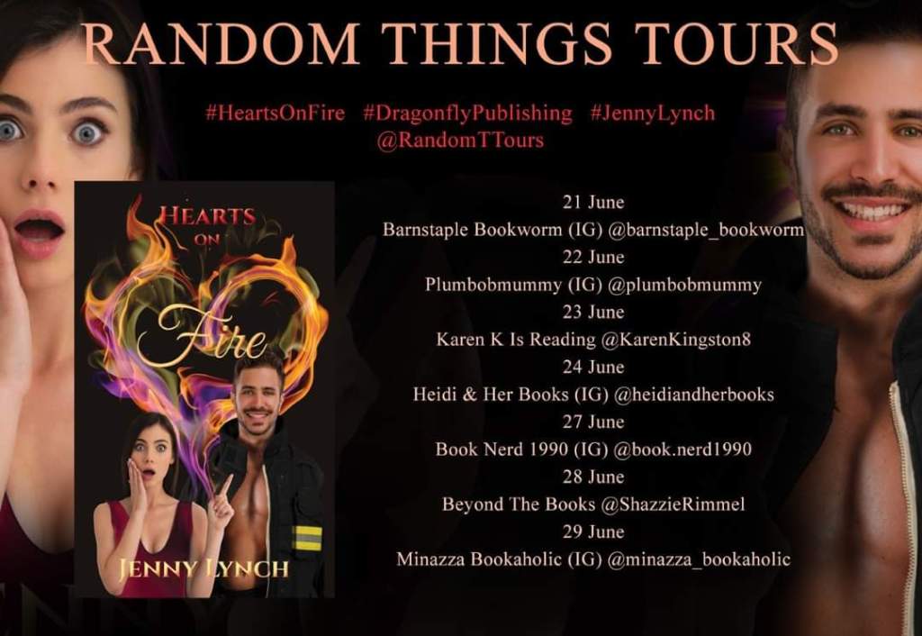 Today I must apologise for my late posting of Hearts On Fire by Jenny Lynch. Thanks to Random Things Tours and Jenny Lynch for my copy of the book.