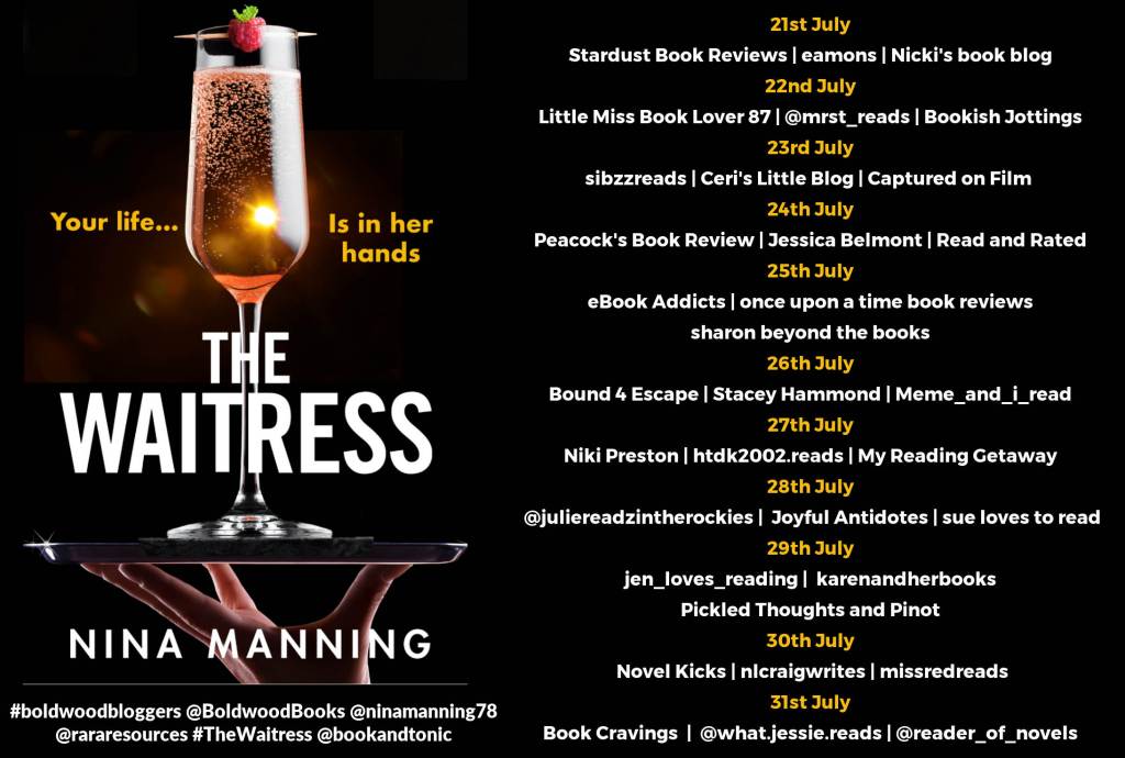 Today I’m part of the tour for The Waitress by Nina Manning! . Thanks to Rachel Gilbey and Boldwood Books for allowing me to be a part of the tour.