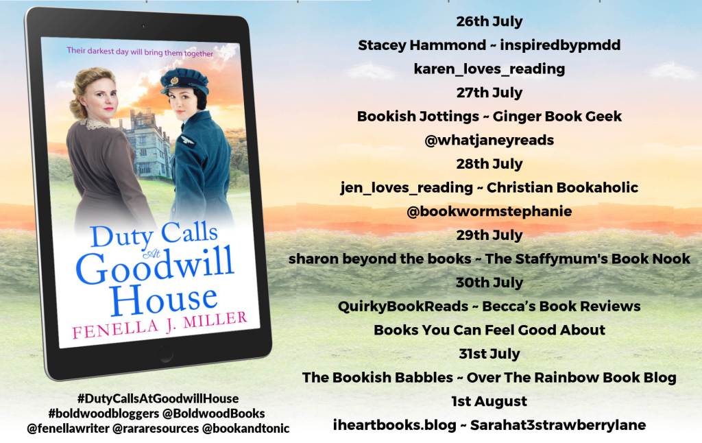 Today I’m thrilled to be hosting a promo for Duty Calls At Goodwill House by Fennella J. Miller on behalf of Rachel’s Random Resources. Thanks to Rachel Gilbey and Boldwood Books for my spot on this tour.