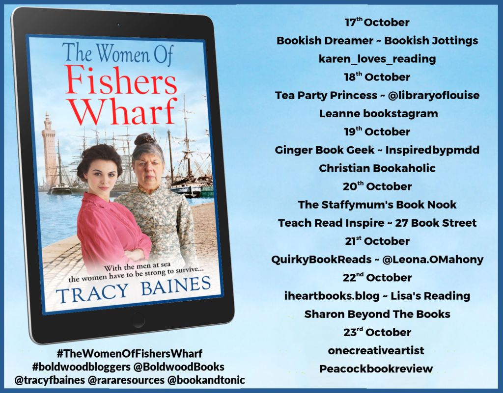 I’m so thrilled to say I was invited along on The Women Of Fisher’s Wharf by Tracy Baines blog tour. Thanks to Rachel Gilbey of Rachel’s Random Resources for the invitation and Boldwood Books for the ARC.