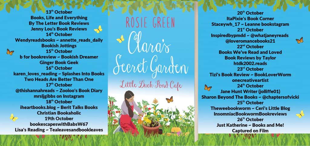 Clara’s Secret Garden is the 23rd instalment in Rosie Green’s Duck Pond Café series. I have only had the pleasure of reading one other of the series and I adores that one.so I jumped at the chance to read another.