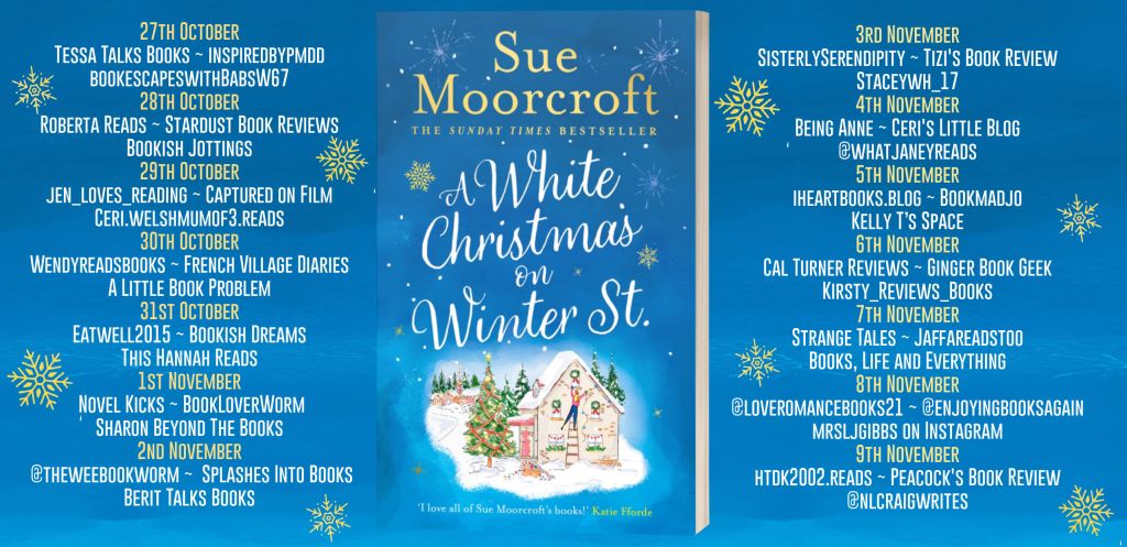 I really am thrilled to be part of the blog tour for A White Christmas On Winter Street by Sue Moorcroft. Thanks to Rachel’s Random Resources and Sue Moorcroft for the copy of this book to bring you my thoughts.