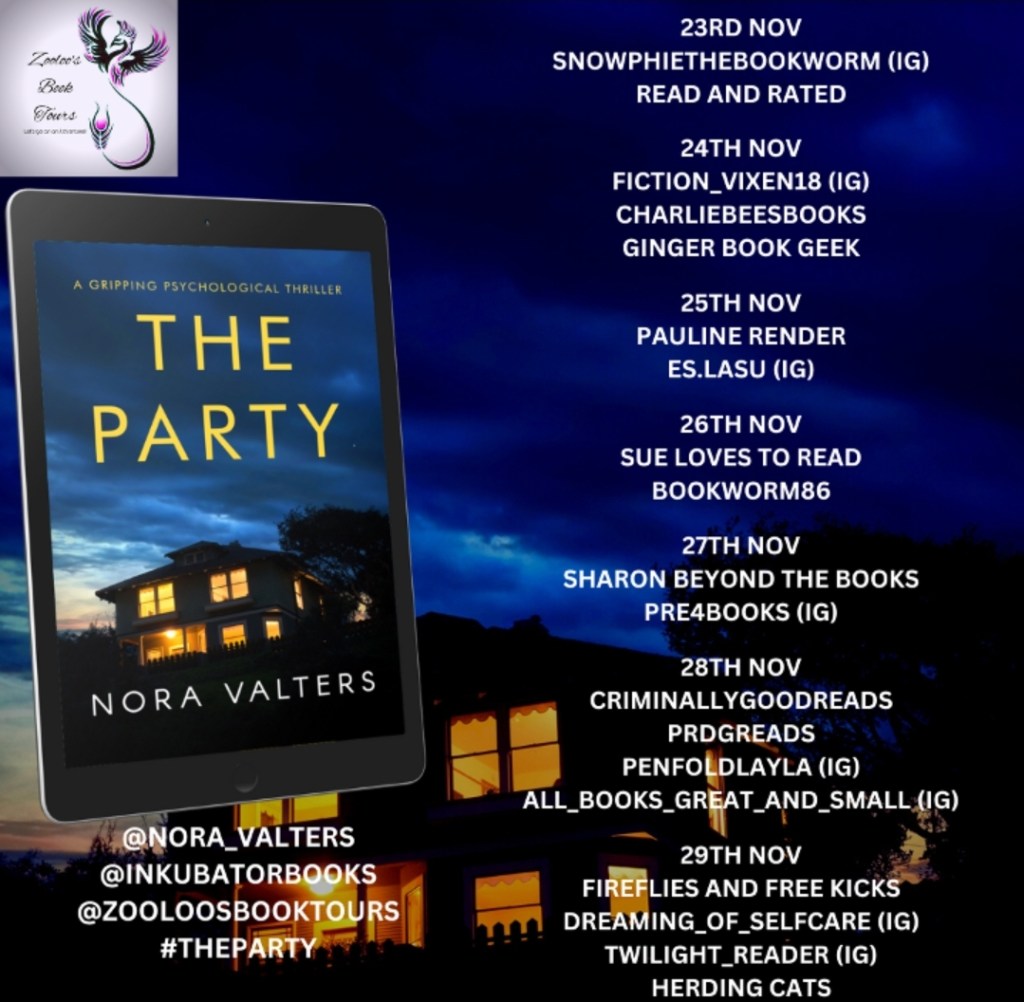 I am so pleased to be a part of the book tour for The Party by Nora Valters. Many thanks to ZooLoo’s Book Tours for my invite and Inkubator Books for the ARC of the book.