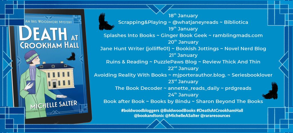 Hiya everyone! I’m on the Blog tour for Death At Crookham Hall by Michelle Salter. Thanks to Rachel’s Random Resources and Boldwood Books for the book to take part.
