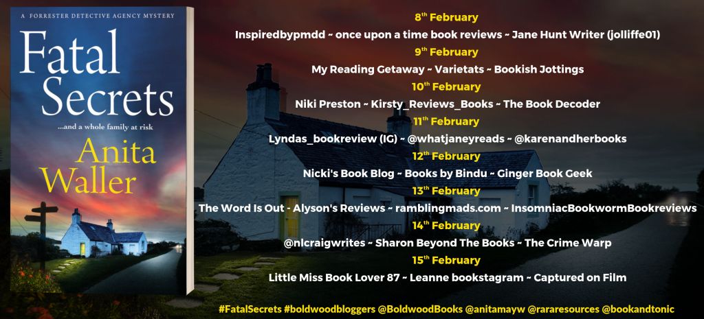 Hi everyone, I am late to post for the blog tour for Fatal Secrets by Anita Waller. Apologies to Rachel, Anita, and Boldwood Books. Thanks to Rachel’s Random Resources and Boldwood Books for the ARC of the book.