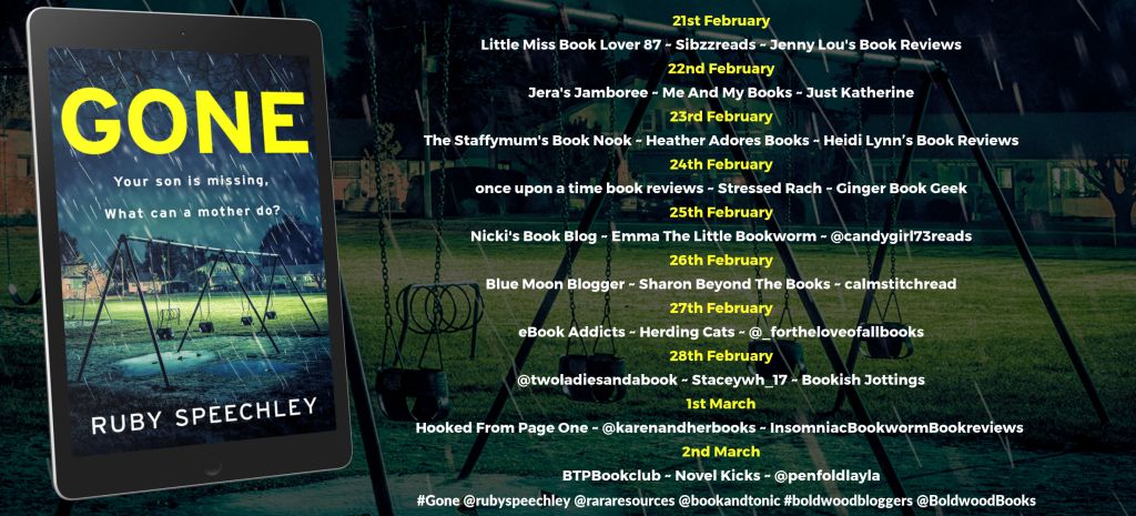 I’m so happy to be hosting a stop on the blog tour for Gone by Ruby Speechley. Thanks to Rachel’s Random Resources and Boldwood Books for the gifted copy of the book.