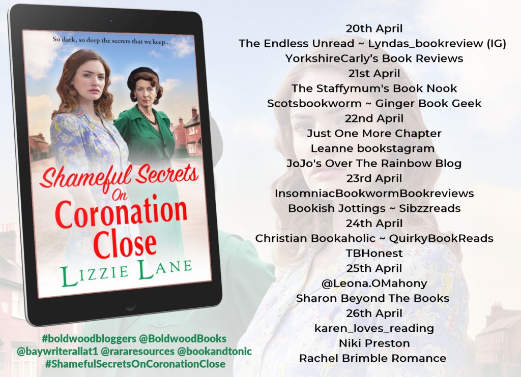 I’m super happy to be able to post my review for Shameful Secrets On Coronation Close by Lizzie Lane. My apologies to Rachel Gilbey and Lizzie Lane for my review being late. Thanks to Rachel and Boldwood Books for the gifted ebook to write my unbiased review.