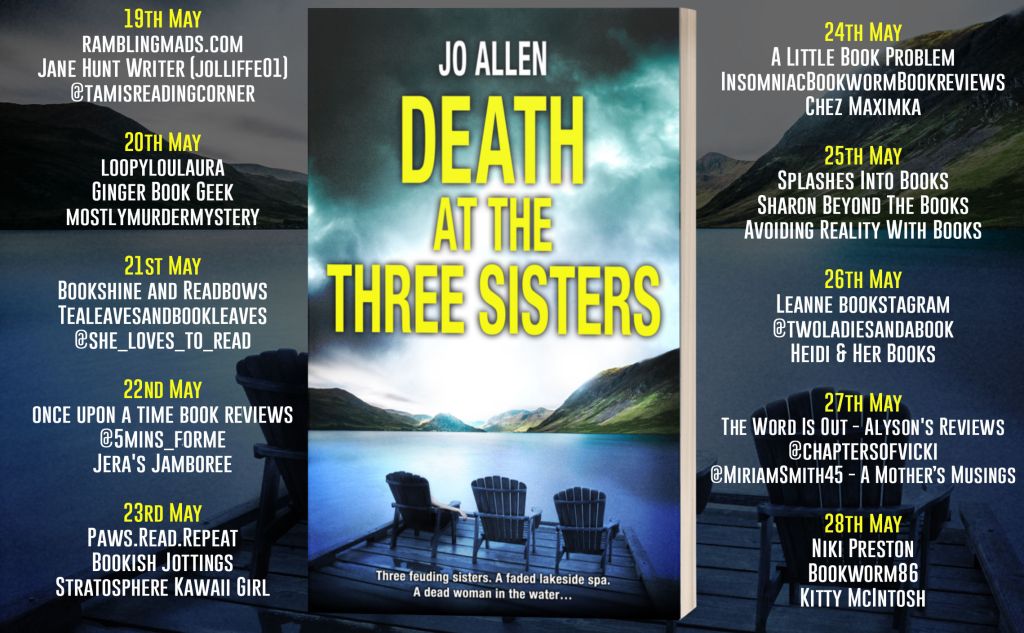 Today, I’m hosting my stop on the Death At The Three Sisters by Jo Allen blog tour. Thanks to Rachel’s Random Resources and Jo Allen for my gifted ebook in exchange for an honest review.