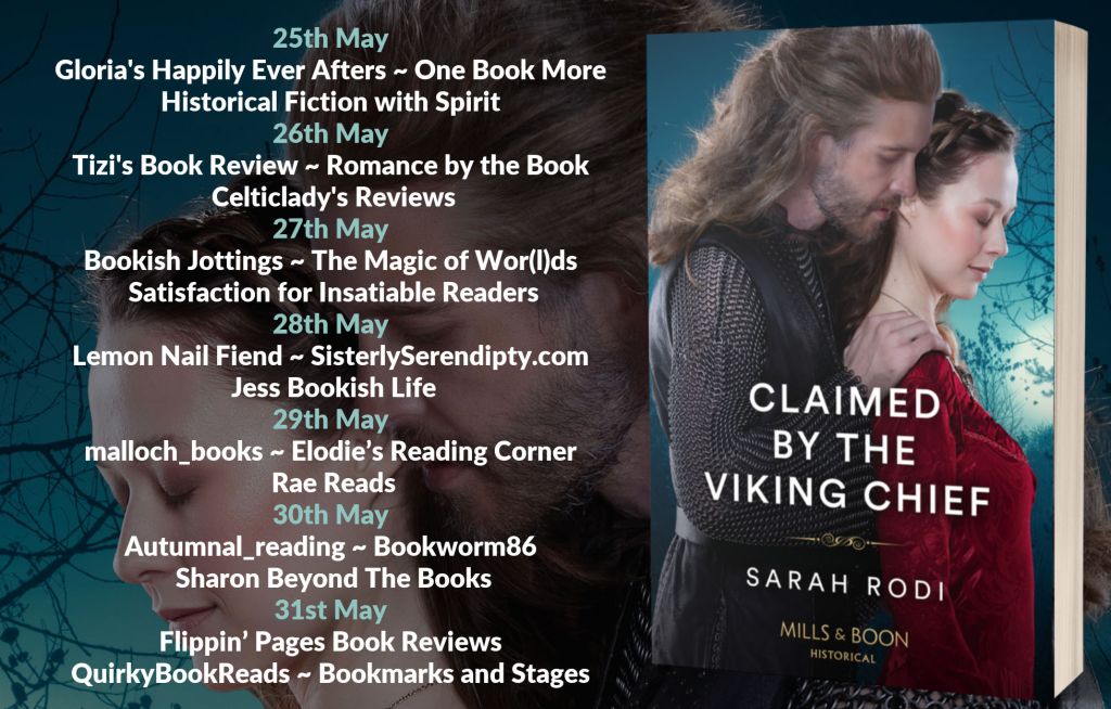Today I’m on the Rachel’s Random Resources blog tour for Claimed By The Viking Chief by Sarah Rodi. PLUS, there is a giveaway, only for UK readers! You can enter by the rafflecopter widget at the bottom of my post!! Thanks to both Rachel’s Random Resources and Mills & Boon Historical for the copy of the book to write my honest review.