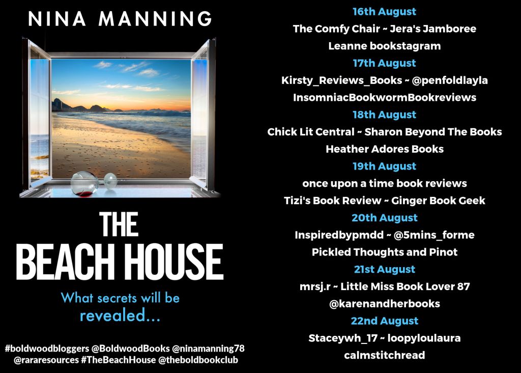 Welcome back, everyone! I’m part of the blog tour for The Beach House by Nina Manning. Thanks as always to Rachel’s Random Resources and Boldwood Books for the gifted ebook to write my honest review.
