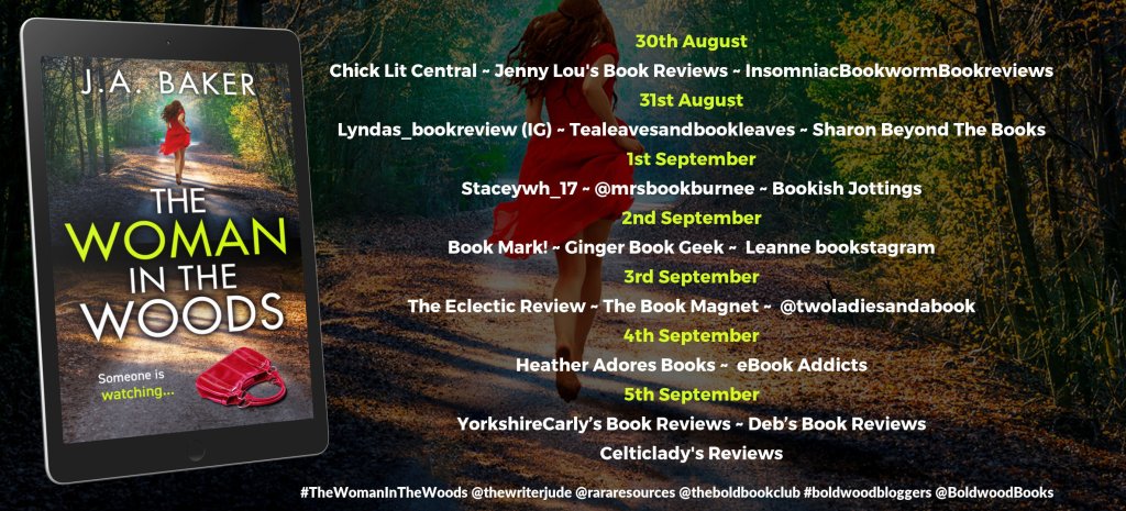Welcome back to the blog! I’m super happy to be part of the blog tour for The Woman In The Woods by J.A. Baker. Thanks to Rachel’s Random Resources and Boldwood Books for the gifted ebook to write my honest review today.