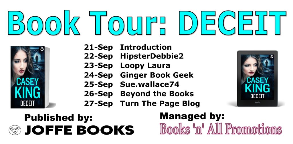 I’m part of the tour for Deceit by Casey King. Thanks to Jill Burkinshaw of Books ‘n’ All Promotions and Joffe Books for the gifted ebook to write my honest review.
