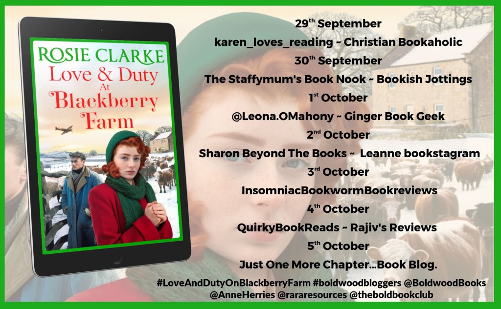 I’m extra pleased to be on the blog tour for Love & Duty At Blackberry Farm by Rosie Clarke. Thanks to Rachel’s Random Resources and Boldwood Books for the gifted ebook to write my honest review.