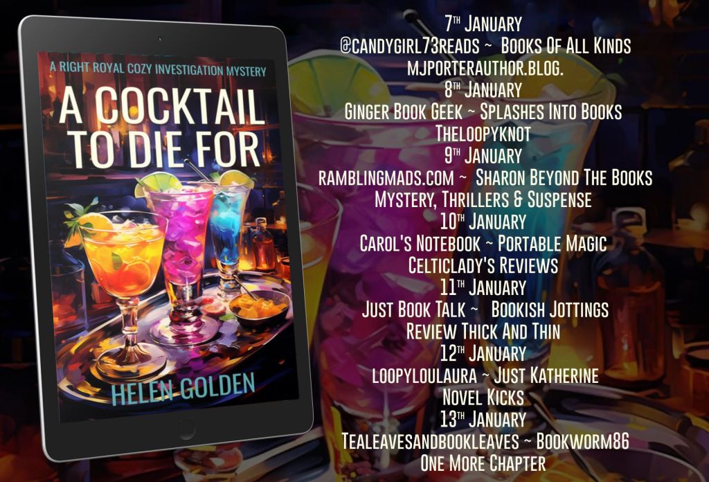 I’m back! Todays review is for Helen Golden’s latest instalment on A Right Royal Cosy Mystery Series, A Cocktail To Die For. Thanks to Rachel’s Random Resources and Helen Golden for my copy of the book to write my review.