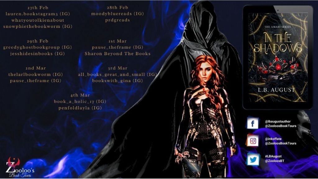 It’s my stop on the book tour of In The Shadows by L.B. August. Thanks to ZooLoo’s Book Tours for allowing me to tag along!